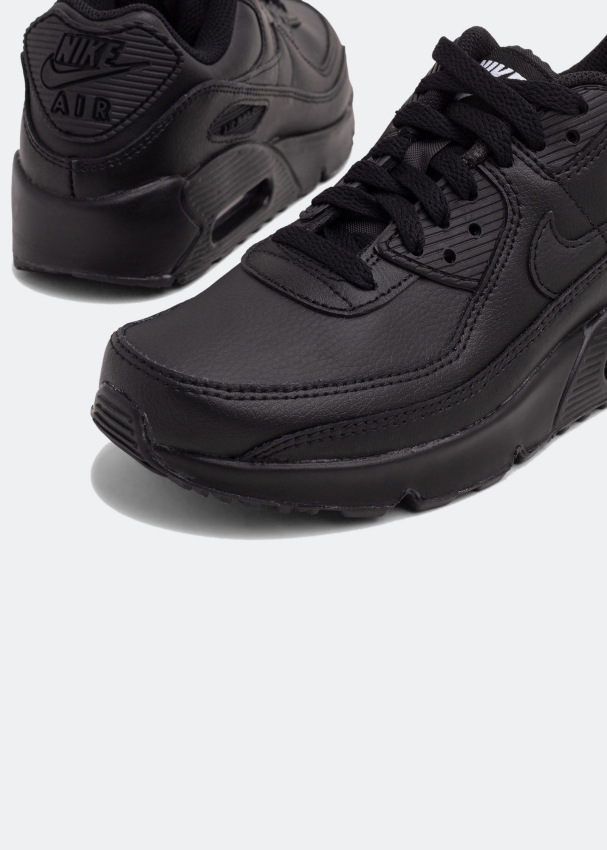 Downsized to fit your budding athlete, Nike's Air Max 90 LTR sneakers feature an all-black theme with no-sew overlays for a supportive, lightweight feel. Its visible Air-Sole unit helps absorb impact, while classic styling creates an authentic look.