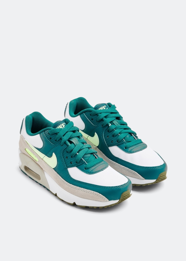 Add a spring to your little one's step with the Air Max 90 LTR sneakers. Made in a green, white and beige colourway, these chunky sneakers are equipped with an Air Max unit at the heel and a padded collar at the ankle.
