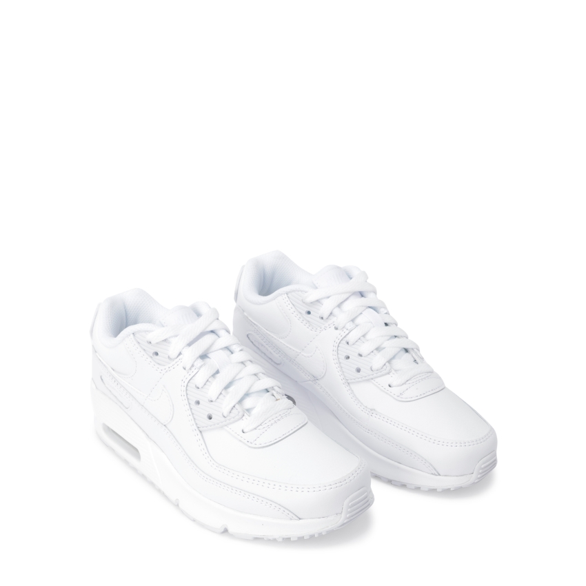 Downsized to fit your budding athlete, Nike's Air Max 90 LTR sneakers feature an all-white theme with no-sew overlays for a supportive, lightweight feel. Its visible Air-Sole unit helps absorb impact, while classic styling creates an authentic look.
