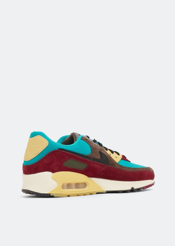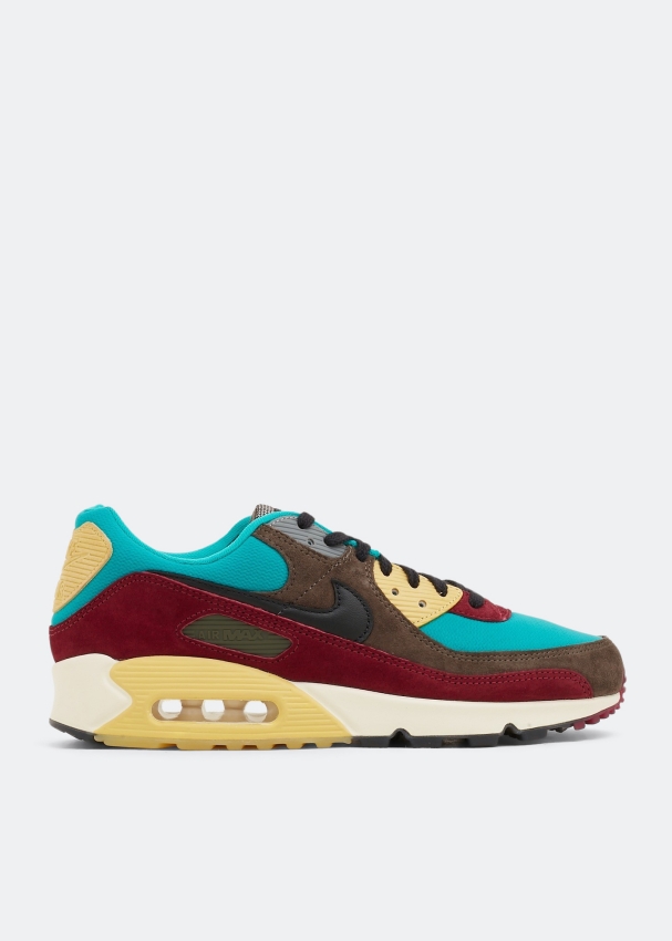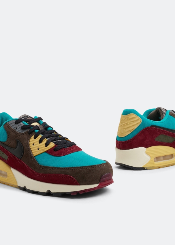 The iconic Air Max 90 by Nike is presented in a Ridgerock, Black, Turbo Green, and Saturn Gold colourway. Made from mesh with suede overlays, they're detailed with leather Swooshes on the sides and ballistic mesh tongues topped off with retro branding. White laces and midsole atop and a semi-translucent outsole complete the design.