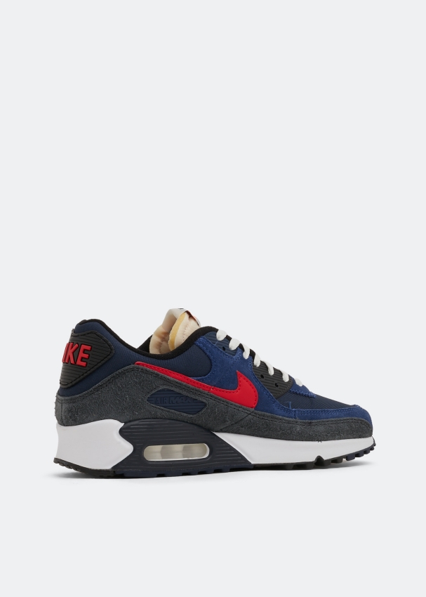 In a 'Deep Royal, University Red, Black, and Obsidian' colourway, the Air Max 90 SE 'AMRC' sneakers by Nike are designed to a classic silhouette that's inspired by Athletics West — the legendary running team founded in 1977 by Bill Bowerman, Phil Knight and Geoff Hollister. Take note of the plush exposed foam tongue, tonal suede overlays, iconic Swoosh, suede mudguard, and a visible Max Air unit surrounded by an orange midsole.