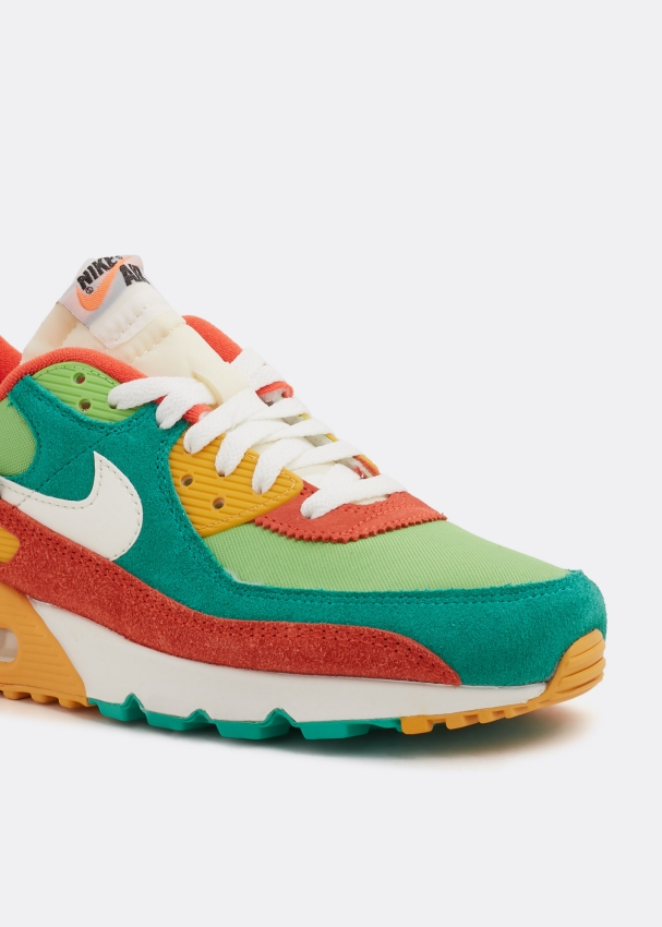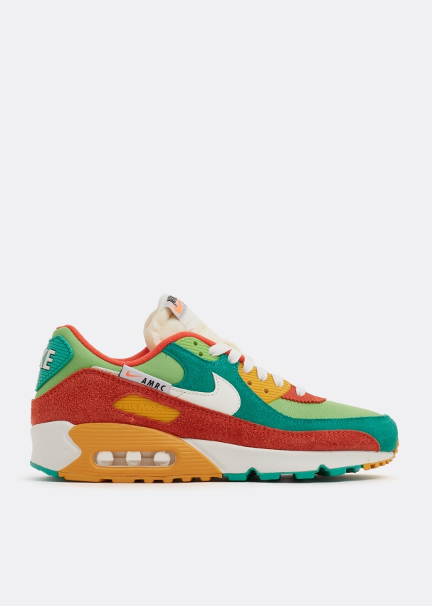 In a 'Roma Green' colourway, the Air Max 90 SE 'AMRC' sneakers by Nike are designed to a classic silhouette that's inspired by Athletics West — the legendary running team founded in 1977 by Bill Bowerman, Phil Knight and Geoff Hollister. Take note of the plush exposed foam tongue, tonal suede overlays, iconic Swoosh, suede mudguard, and a visible Max Air unit surrounded by an orange midsole.