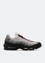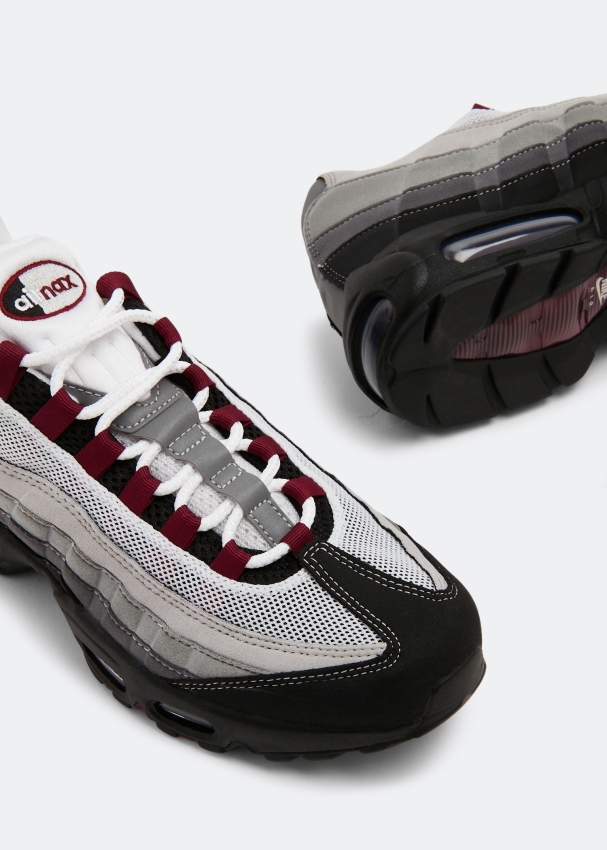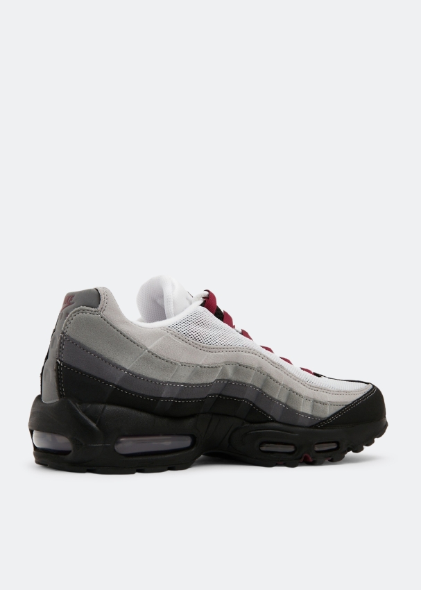 The latest update of Nike's core Air Max 95 sneakers arrives in a 'Dark Beetroot' colourway. The suede and mesh upper features a grey gradient design, with a black leather toe box to highlight the toes. Dark burgundy accents are added to the lace eyelets, branding on the tongue, Air Max bubbles, and the Swoosh logos.
