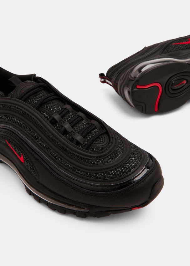 The Nike Air Max 97 'Black and University Red' reimagines an iconic running shoe into everyday kicks. They're inspired by Japanese bullet trains and water droplets rethought with tech woven mesh. With classic water ripple-inspired lines, Max Air cushioning and a durable design, it's all about bringing a '90s classic to your everyday rotation.