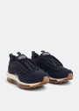 Part of the Air Max 97 25th anniversary, this legendary model designed by Cristian Tresser is presented in an Obsidian, Gorge Green, Midnight Navy, and Sail colourway. Made from a mix of woven mesh, nubuck and leather materials, they're finished with 3M reflective detailing atop a Sail midsole and Gum rubber outsole.