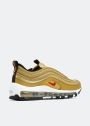 Celebrating the 25th anniversary of the beloved Air Max 97, this combines metallic gold, university red, black and white colours. Featuring a mesh upper, they're presented with reflective detailing and wavy leather overlays, an Air Max unit, and red Swooshes for added pop.