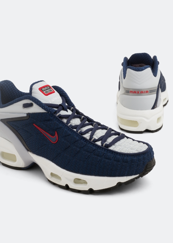After two decades, Nike's Air Max Tailwind V SP sneakers are back. The iconic quilted mesh upper is paired with the Max Air cushioning in the forefoot and heel for a comfortable and unique look. Arriving with a new colourway of 'Midnight Navy' and 'University Red', this lace-up style features white accents throughout and a contrasting black rubber outsole.